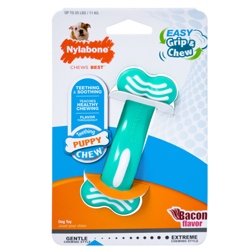 NYLABONE TEETHING PUPPY CHEW BENT EASY GRIP & CHEW BACON FLAVOR