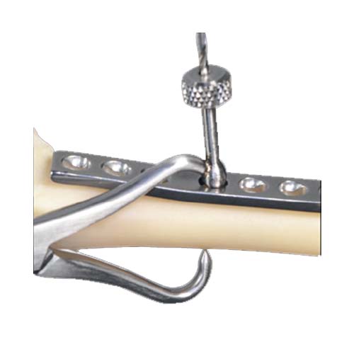 Todos los DCP y muchas otras placas están diseñadas para sujetar e interactuar con tornillos para huesos de cabeza esférica. Esta gama de fórceps tiene una punta esférica en un lado de la mandíbula y una punta puntiaguda en el otro para permitir el máximo rango de posiciones para cada fórceps sin comprometer la fractura reducida. Incorporada en la punta de la bola hay una guía de broca de un tamaño apropiado que simplemente sobresale a través de la bola para encajar en el hueso debajo de la placa. A medida que se aplica presión, la punta de la bola se acopla a los bordes del orificio de la placa produciendo una fijación segura de la placa en el hueso con una guía de broca in situ, manos libres lista para perforar. La punta puntiaguda está desplazada con respecto a la guía de broca para evitar el contacto entre la punta de la broca y las pinzas. Disponible para tornillos y placas 1.5 / 2.0, 2.4 / 2.7 y 3.5.