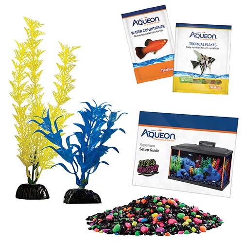 $71.63Los kits de acuario LED NeoGlow añaden diversión y color a cualquier habitación! Estos kits cuentan con un tanque de vidrio con silicona de colores que emite fluorescencia bajo una iluminación LED azul. Dentro de cada kit hay plantas decorativas coordinadas y grava multicolor. También se incluye: filtración eléctrica QuietFlow, campana de bajo perfil con iluminación LED azul, respaldo negro, cartucho de filtro, muestras de cuidado del agua y comida para peces y guía de configuración.