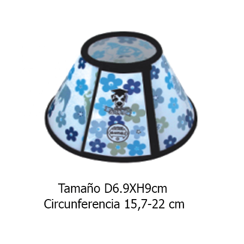 $2.04El collar isabelino, también llamado collar en cono o pantalla, por su similitud con la pantalla de una lámpara, se usa en veterinaria como “método de contención” para evitar que el animal, generalmente un perro o un gato, se autolesione tras ser sometido a algún tipo de tratamiento, cura o intervención quirúrgica, que pueda llevar al animal a la necesidad de lamerse o rascarse para calmar el dolor, el picor, o cualquier otra molestia. Tamaño D6.9 x H9 cm perimetro de circunferencia del cuello 15, 7 - 22 cm
