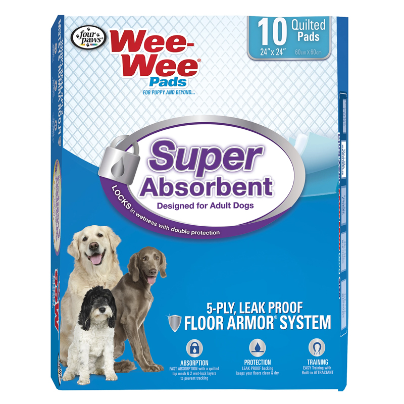 Four Paws Wee-Wee pads proporcionan entrenamiento sin preocupaciones y una alternativa al alivio en exteriores para su perro, con pads fáciles de usar que combinan con la decoración del hogar.