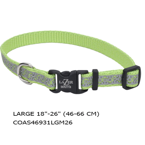 COSTAL LAZER BRITE REFLECTOR COLLAR CON HEBILLA PLASTICA CURVA A PRESION LIME GEOMETRIC LARGE 18-26 (46-66 CM)